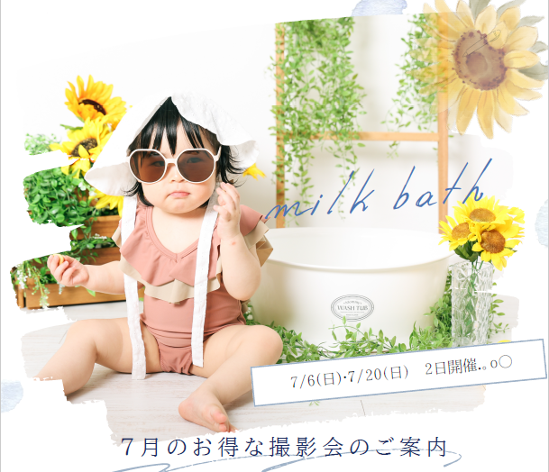 小さなお風呂に入った赤ちゃんを撮影する、今人気のミルクバス撮影!🛀 本物のお湯が入ったバスタブで撮影をさせていただきます。今しか残せないありのままの姿を残せるのは今だけ♪ 特別な時間を撮影させて頂きます! ーみるくバス撮影会2025.7.6(日) & 20(日)両日10:00~15:00(完全予約制) 撮影時間:30分 対象年齢:6ヶ月(1人で座れたらOK)~1歳半 ★対象年齢以上のお子様でも撮影可能です!(みるくバスには入らない撮影になります) 2歳:ウシオ衣裳での撮影やオムツで裸撮影、3歳以上:ご自前の甚平や水着での撮影になります。 料金:8,800円(撮影料、データ10カット付き、メールにて納品) ※全データのご希望等もお伺いできますのでご相談ください。 ご予約フォームはこちら♪ 下記QRコードからもご予約可能です↓ その他、お問合せはお電話かHPのお問合せフォームにてご連絡下さいませ。 ☎ 0857-22-0222(定休日:水)