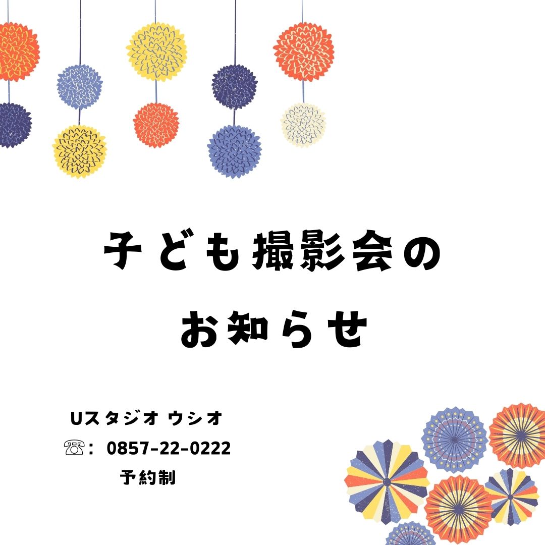 毎回好評の子ども撮影会の開催が決定いたしました♪いつものようにドライフラワーのセットや、 バースディ撮影をご希望の方はタペストリーもご使用可能です♪ 全データをお渡しさせて頂くので、とてもお得です★ ー子ども撮影会2025.1.19(日)10:00~16:00(要予約・所要時間 1時間以内)撮影料金:22,000円(撮影全データ(50カット以上付き!)ご予約状況はインスタでもご確認いただけます♪ ご予約またはお問合せは、お電話かお問合せフォームにてご連絡下さいませ。 ☎ 0857-22-0222