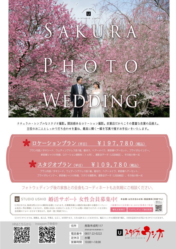 【春に向けた桜フォトウェディングプランのご案内】 満開の桜の木の下で、桜と一緒に春のフォトウエディングを楽しんでみませんか?🌸 ナチュラル、シンプルなスタジオ撮影も勿論OKですが、このシーズンだからこそ残せるお写真があります。 開放感あるロケーションでの撮影はテンションも上がりますよ🌸一緒に思い出残してみませんか? ーフォトウェディングPlan内容ー 新郎様タキシード・新婦様ウェディングドレス各1点、新郎様ヘアセット、新婦様着付け・ヘアメイク、ブライダルインナー・小物セット、新郎様シャツ・小物セット、ロケーション撮影料・全データ(USB納品) ※アルバム代は別途となります。