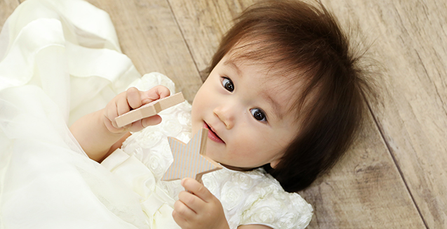 笑顔やおすまし顔、泣き顔だって 全てが大切な宝物――― お子様の自然な仕草や表情を スタッフが遊びながら引き出して、 余すことなく残します。