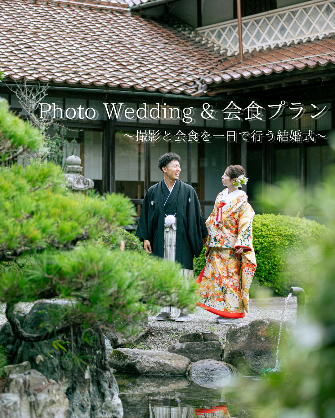 ~撮影と会食を1日で行う結婚式~  新しいプランを記念してキャンペーン価格にてご提供‼    ☆先着5組様限定☆ これまで二人の人生で繋がっていた縁に感謝し、その繋がりが新たに結ばれる新しい門出をシンプルに祝う。派手ではなく”本質的な時間”を大切にするプラン!! ーPlan内容ー 『フォトウェディング』 ・新郎新婦様衣裳・美粧・ロケーション撮影料orスタジオ撮影料(撮影場所1ヶ所)・撮影全データ ・スケジュール作成料・アテンド 『会食』 ・衣裳延長料・集合写真撮影料・お料理(10名様分)・飲み放題(10名様分)テーブル装花 ー お問い合わせはお電話か、お問い合わせフォームよりお問合せ下さい。 ☎0857-22-0222